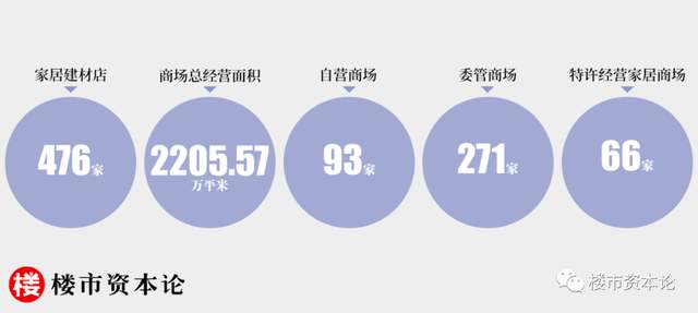 红星美凯龙一季报数据,截至3月底,拥有476家家居建材店,商场总经营面积2205.57万平方米。据弗若斯特沙利文的报告,红星美凯龙是国内经营面积较大、商场数量最多以及地域覆盖面最广阔的全国性家居装饰及家具商场运营商。