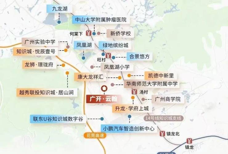 位于知识城起步区,最近的地铁是14号线汤村站,距离约2公里,