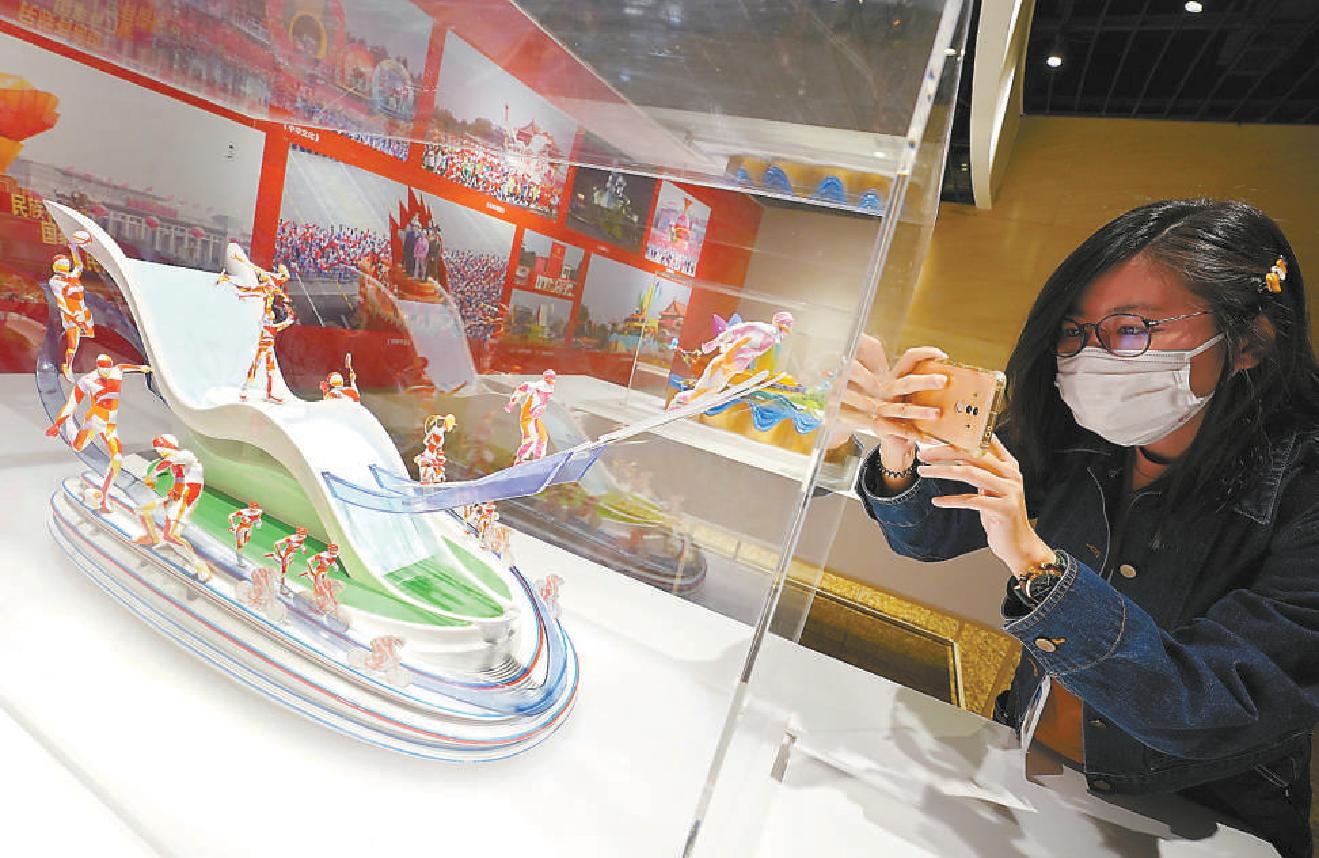 北京国际设计周在中华世纪坛艺术馆举办的“理念践行 守正创新——国家形象艺术设计成果邀请展”吸引众多观众,其中展示的冬奥元