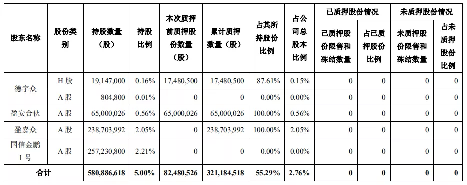 增持万科股票至5%后仅一天,万科事业合伙人“盈安系”匆匆将手上2.05%的股权进行了质押。5月6日,万科A(000002.SZ)公告称,公司股东深圳盈嘉众实业合伙企业(有限合伙)(以下简称“盈嘉众”)将持有的万科238,703,992股无限售流通A股质押给招商财富资产管理有限公司(以下简称“招商财富”)。质押期限自2021年4月30日起至2022年9月8日止,质押主要用于偿还债务。两天内,盈安系先增持后质押,市场猜测,万科管理层借钱增持。目前,盈安系累计已质押万科股份3.21亿股,占一致行动人所持股份的55.29%,占万科总股本2.76%。按5月7日总市值3253亿元计算,其对应市值约89.8亿元。借钱增持此前的4月29日,万科A才公告,深圳市德宇众实业有限公司(以下简称“德宇众”)以自有资金通过集中竞价的方式买入公司80.48万股,占万科已发行股份的0.01%。盈嘉众与德宇众、深圳盈安财务顾问企业(有限合伙)(以下简称“盈安合伙”)、国信金鹏1号同为一致行动人(统称“盈安系”)。此次增持后,德宇众、盈安合伙、盈嘉众、国信金鹏1号分别持有万科1995.18万股、6500万股、2.38亿股以及2.57亿股。盈安系合计持有万科的股份上升至5.81亿股,占万科总股本的 5.00%。触发举牌,“盈安系”公司由此得以出现在公众视野。增持后仅过了一天,盈安系将手上2.05%的股权质押给了招商财富,公告中披露“主要用于债务偿还”。一套连环动作下来,市场猜测,万科管理层借钱增持。实际上,盈安系加杠杆增持,已并非首次。早在2014年,万科提出“事业合伙人”概念,将此前EP奖金制度演变为合伙人持股计划。当年4月,万科EP奖金的奖励对象发起并召开万科持股计划合伙人大会。后者是EP奖励对象为管理运作EP奖金而成立的自治组织,和公司没有隶属关系,不干预公司经营。随后,盈安合伙成立,涉及包括王石、郁亮等在内的1320名单个合伙人,并开始引入融资杠杆,在二级市场买入万科A股。据了解,从2014年5月到2015年1月,万科累计披露了11次合伙人持股计划购买股票的信息。彼时,万科股价低迷,长期徘徊在10元/股之下。郁亮曾公开讲到,万科一千多名骨干拿奖金、借的钱去买股票,股市冷暖直接影响骨干队伍持有的万科股票收益高低。有业内人士透露,盈安系增持万科股票引入了杠杆,其资金成本并非固定,而是视市场利率而定。加杠杆增持有一定外部风险,也增加了资金成本,但正因如此,更能反映出管理层对自家股价的信心,市场将这一动作解读为利好。有投资者笑称,“珍惜28元以下的万科吧”。质押股份过半2020年3月,盈安合伙通过深交所大宗交易系统购入万科A约6500万股,占万科总股本的0.58%,耗资16.25亿元;11月,德宇众通过港股通买入万科H共计1914.7万股,约占总股本0.16%,花费成本约4.68-5.57亿港元。较新公告的主角盈嘉众实际成立于今年4月16日,公司注册资本1亿元。4月28日,盈安合伙将国信金鹏1号所持1.9976亿股、国信金鹏2号所持3894.16万股交易至盈嘉众,占万科总股本的2.05%。根据此前公告,至今年4月29日德宇众增持之前,盈安系已合计持有万科5.8亿股,占万科总股本的4.99%。