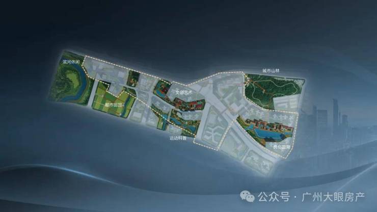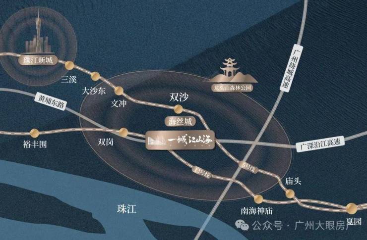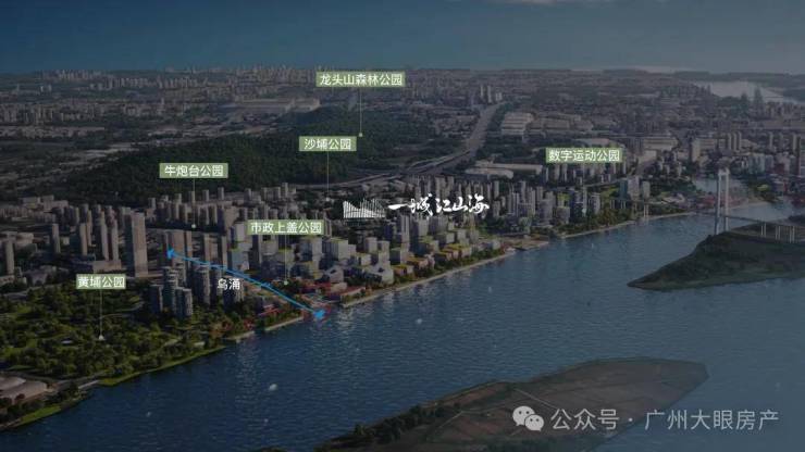 拥揽珠江一线景观、关键还是南向望江,这是连琶洲都做不到,还背靠5000亩龙头山森林公园,南望珠江水,山水相依,所开发地块约90%界面朝向公园,打造 300 米见绿,500 米见园;加上片区规划“5+9”的“公园城市”,一流生态环境实现出门即入园