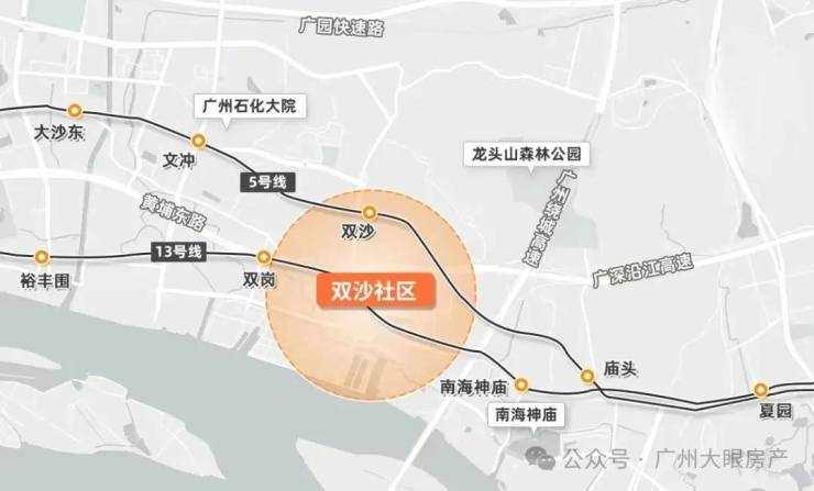 项目是临港经济区的重要功能节点,双沙旧改地块众多,首开区具体位置在5号线双沙地铁站B口附近,与地铁5号线双沙站的直线距离仅约50米,与地铁13号线双岗站直线距离也不到500米,双地铁站护航,交通条件优越,从项目出发,2站到鱼珠CBD,5站金融城,6站琶洲东区,10站直达珠江新城,囊括广州最重要的几个CBD。