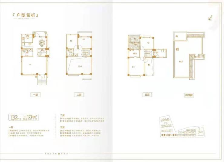 别墅:92㎡2房1厅2卫、132㎡2房2厅3卫、168㎡4房2厅3卫、176㎡4房2厅3卫