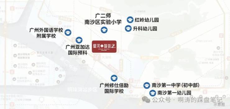 幼儿园: 南沙区第一幼儿园(省一级)、升科幼儿园、红岭幼儿园、项目配建幼儿园(建设中)