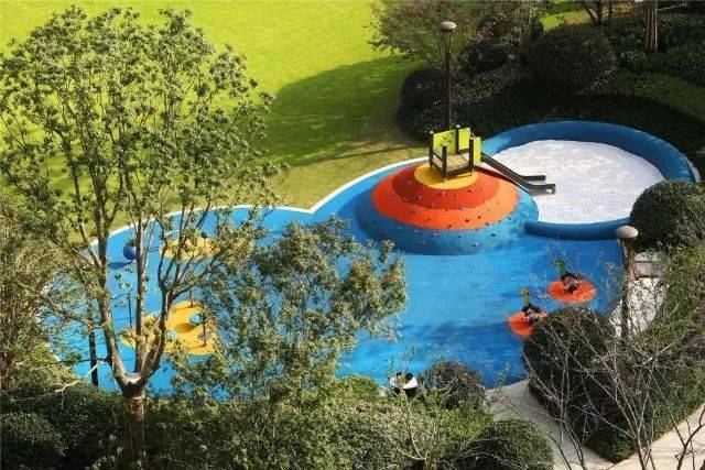 同时打造室外儿童乐园,为此设计了约1200平米的阳光大草坪,铺设高尔夫球场级别的果岭草,呈现地毯般的质感;同时,根据小业主年龄,规划两部分综合性活动器械区域,供低龄的1-3岁婴幼阶段与3-6儿童阶段使用,容纳多项休闲活动,并设置成人看护廊架与直饮水点,实现城芯生活无限想象。「新湖·上海青蓝」实景图