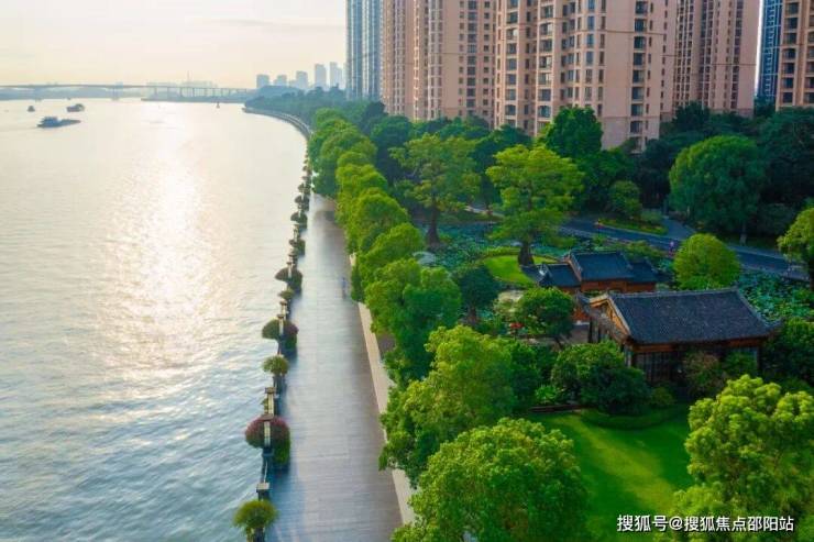 ◎ 规划: 9栋建筑沿江岸线南北排布,环抱中央园林,形如“九星捧月”,风水格局上佳。