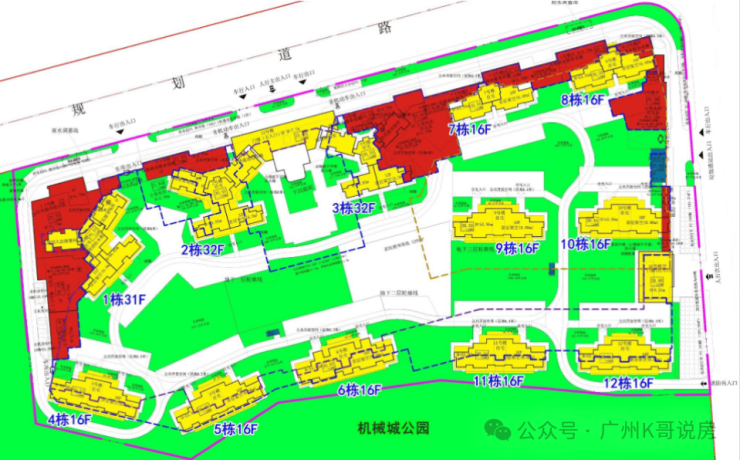 12栋住宅,3栋2梯4户31-32层高层住宅,相比于周边动辄2梯6户超高层,舒适度更上层楼;
