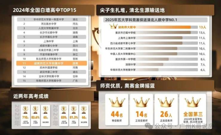 根据2024年全国百强高中排行榜,湖师大附中位列11名,甚至比广州家长心中的“神学院”华附排名更高!
