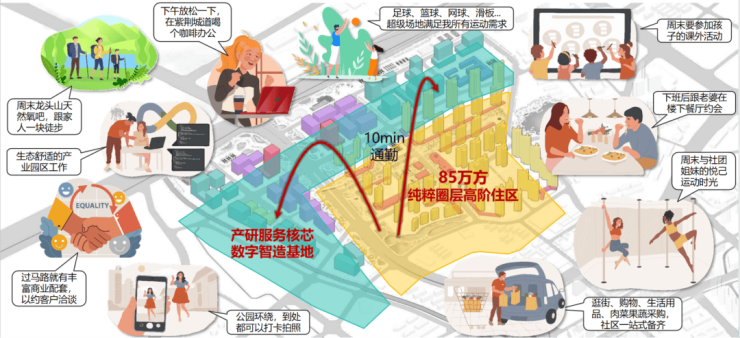 业态类型:集创新办公、生态社区、山水公园、邻里中心、全龄教育等一体。