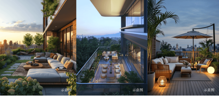 将平层住宅追求的套内阳台空间,升级为“四代宅”产品中的对外敞开空间;