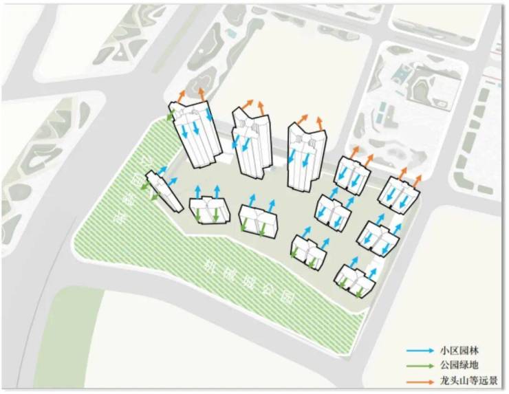针对人居环境,项目以“两大长廊+三座公园”营造全域公园城市;