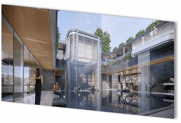 下沉会所的中庭水院景观灵动飘逸,复刻出星级酒店的高奢氛围。