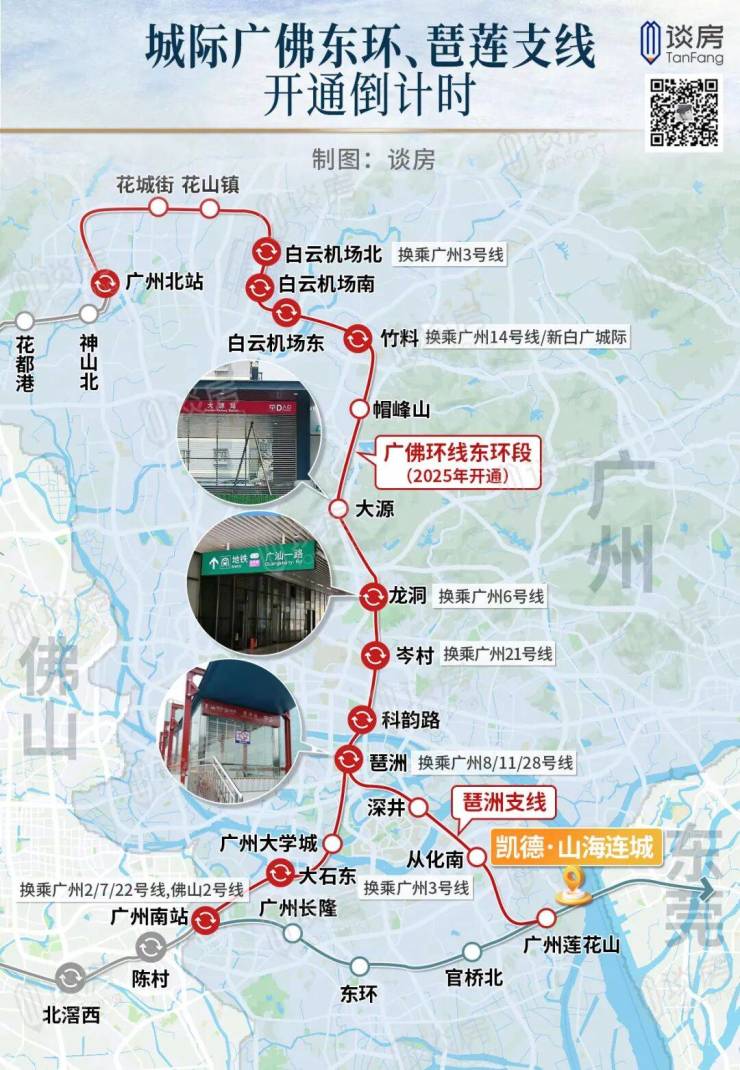 尤为琶莲城际,途经海珠、黄埔、番禺,是番禺莲花山板块链接琶洲的重要轨道。