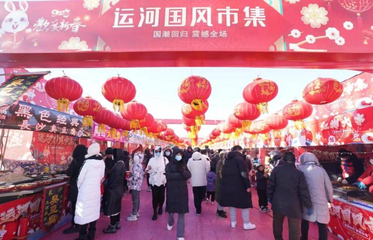 通州大运河文化旅游景区举办国风市集,市民欢欢喜喜过大年