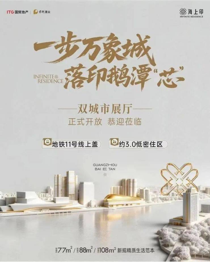 作为区域标杆项目,国贸保利海上印凭借其稀缺的二线江景资源、醇熟的生活配套与匠心打造的产品力,成为高净值人群置业荔湾的热门之选。