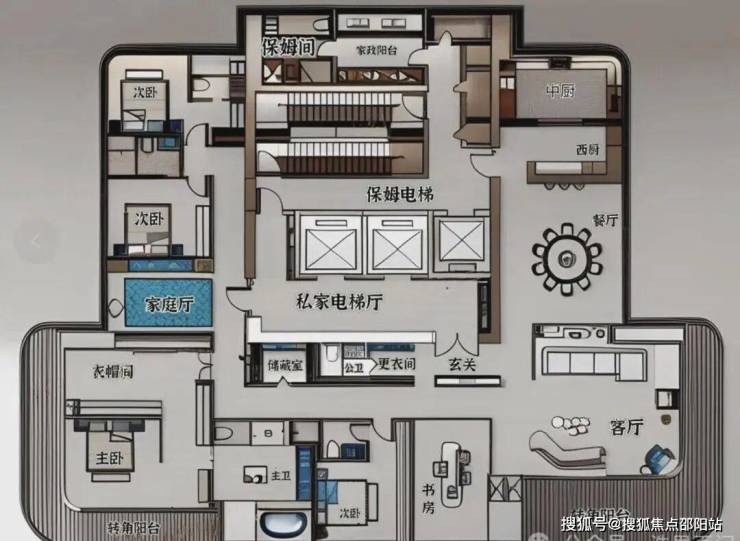主力户型:195-285-360-495m²,一期推出210-510㎡大平层户型,包括510㎡一层一户的顶豪户型(3梯1户)、375㎡奢适大平层(5梯2户)、305㎡经典大宅(3梯2户)及210㎡精致舒居(4梯3户),户型空间开阔,注重功能性和私密性。