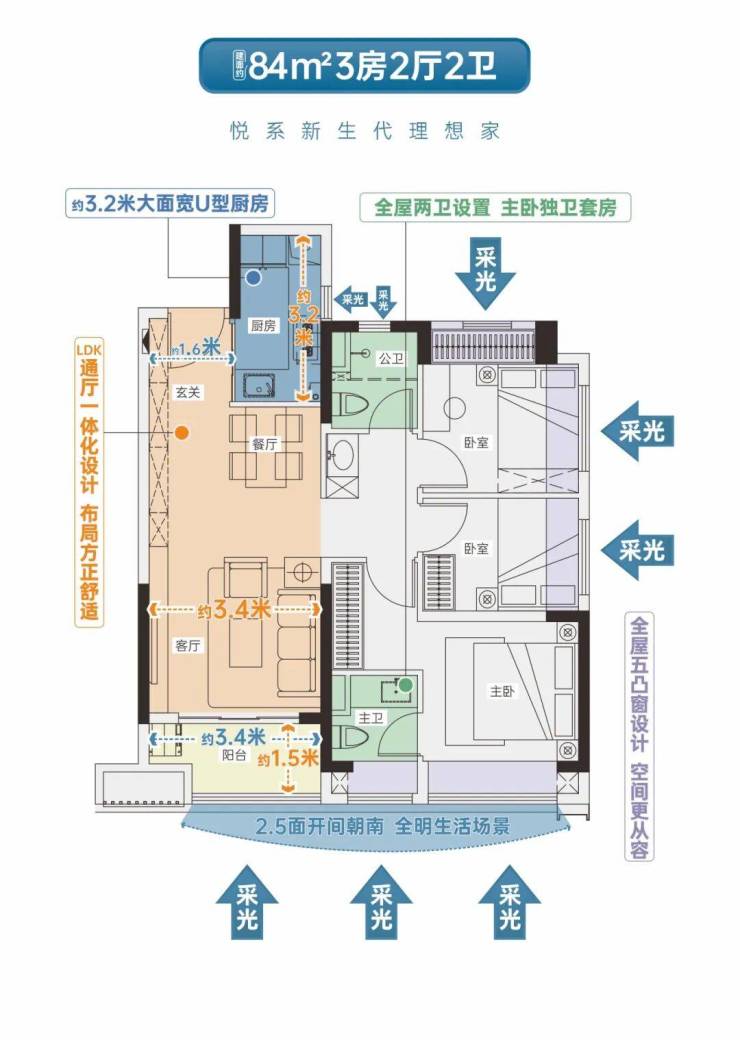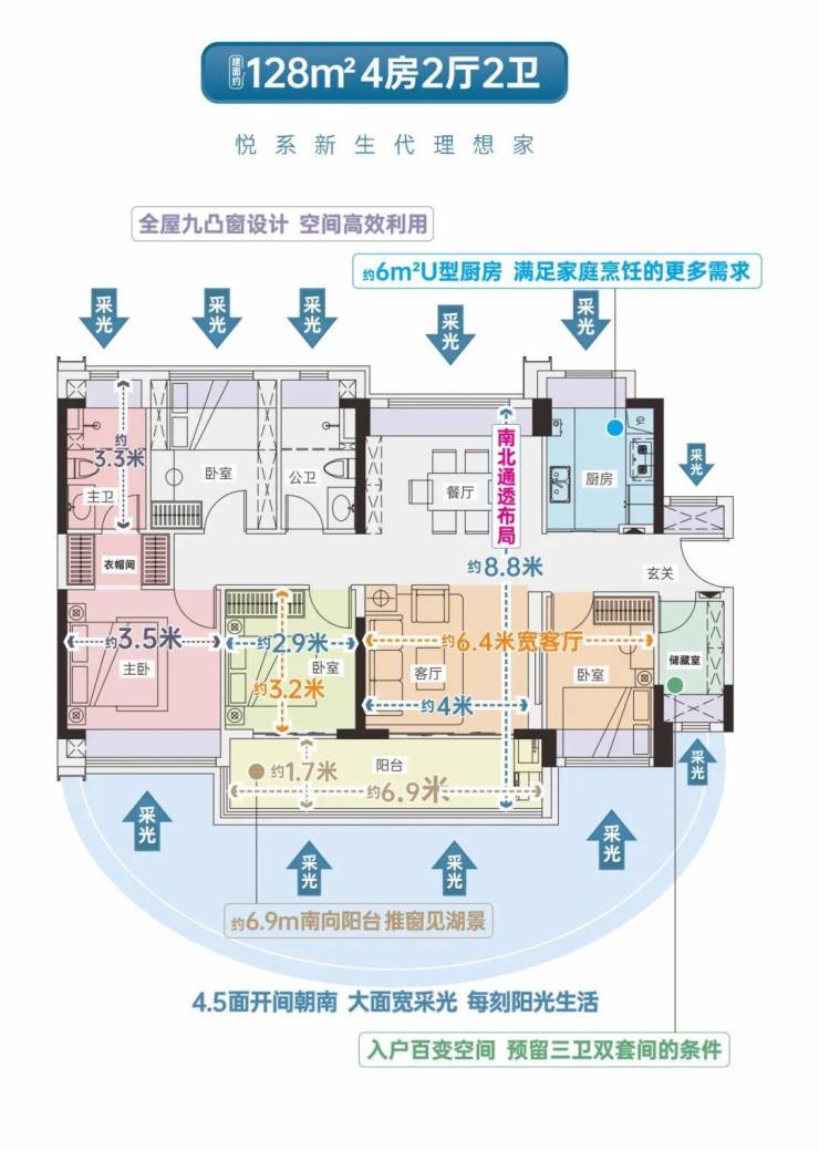 •LDK通厅设计,双开间超6米宽景阳台