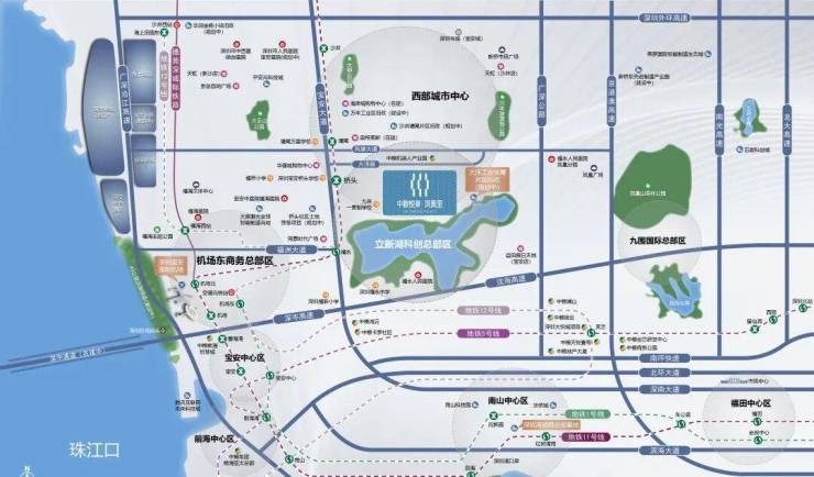 项目位于深圳市.宝安区.福海街道.立新湖片区,稔田社区大洋路与塘新路交汇处西南侧,北侧一路之隔是中粮凤凰里花苑小区、南侧直线约400米是立新湖水库(立新湖公园),距离11号线桥头站D2出口步行约650米。项目属性旧改用地,分两期开发,目前开发的是二期。