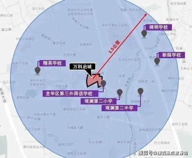 万科启城家园自带幼儿园学校、毗邻龙华区第三外国语九年制学校,另外万科启城家园观澜二中、观澜二小距离万科启城家园也都不远。万科启城家园1.5公里范围内还分布有锦明学校、新园学校、精英学校等。