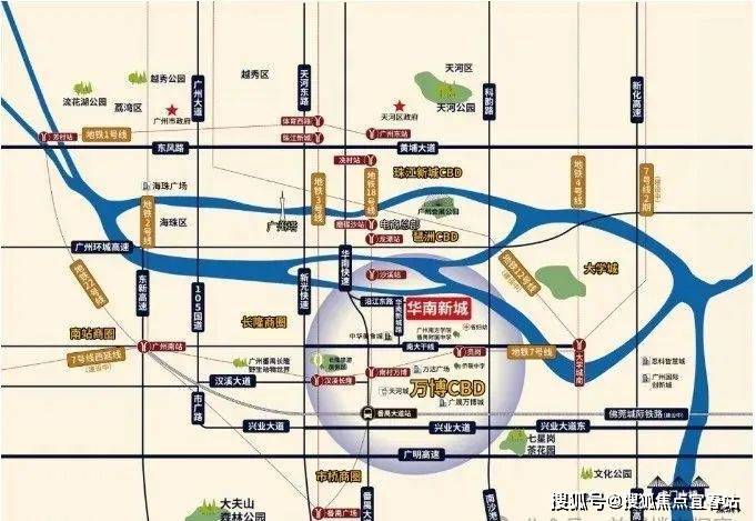 华南新城位于番禺区北部,临江靠山,西临华南快线,东与大学城隔江相望,北临珠江,南面是兴南大道和万博CBD。同时合生系在周边仍有大量建设用地,正在分批开发,致力以华南新城为核心,打造华南板块城市居住群。