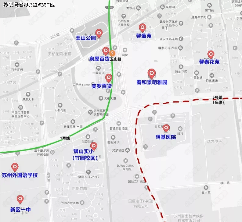购物:华润万家(苏州塔园店)、天街购物中心、泉屋百货、苏州新区商业街、日日新水果连锁超市(淮海街店)、斯凯奇(金鹰国际购物中心店)、波司登(金鹰国际购物中心店)、小米之家(苏州龙湖狮山天街店)、Apple授权经销商(顺电龙湖狮山天街店)、热风(龙湖狮山天街店)