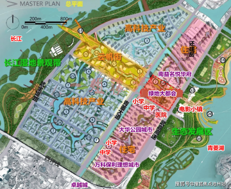 微观区位:北面为规划中的小学、中学、医院、云帆街等用地;南面为商业、小学、中学、住宅用地,部分已经开建;西面为高科技产业用地,其中包括联东U谷;东面为青菱湖、规划中的青菱生态发展区。