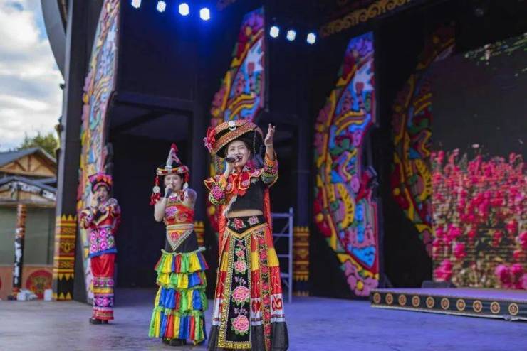 彝人部落内,由伟光汇通运营团队自主研发的旅游产品彝乡恋歌,自创作以来,这款旅游产品升级迭代从未停歇,将彝族的歌舞文化、酒歌文化、服饰文化等融入其中,实景展示彝族文化和地域民族特色。持续更新迭代彝家婚俗,通过对歌、泼喜水、背新娘等环节的设置,邀请游客参与其中,充分强调场景体验与互动娱乐。