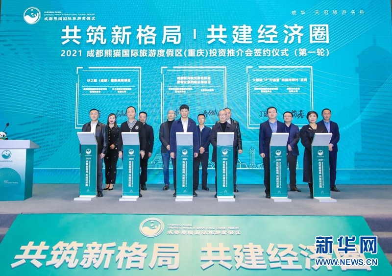 12月15日,由成都市成华区人民政府主办,成都市成华区投资促进局和成都市熊猫国际旅游度假区管理委员会承办的2021年成都熊猫国际旅游度假区投资推介会(重庆)暨重大项目签约仪式在重庆举行。“大熊猫IP”打造暨“熊猫地球村”项目、超级奥莱项目、商界熊猫文旅科技项目等9个项目成功签约,拟总投资150亿元。