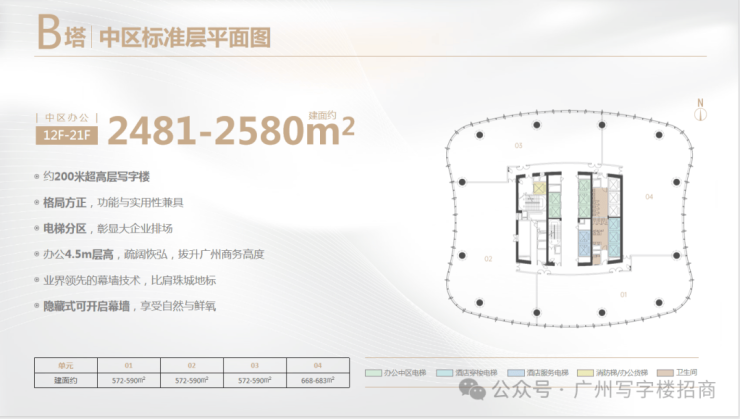 B栋12-21F整层 2481-2580方 可连层 管理费32元(暂定)