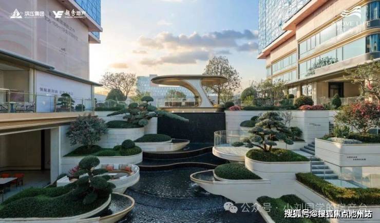 项目整体抬升约5米,创新性地构建了一个“空中花园”体系。通过“一环两轴”串联七大主题浮岛,叠瀑庭院、无边界泳池、童玩乐园等场景错落镶嵌其中。这不止是绿化,更是一个功能与观赏性兼备的立体森境,将生活从地面延伸至空中。杭州滨江望舟府
