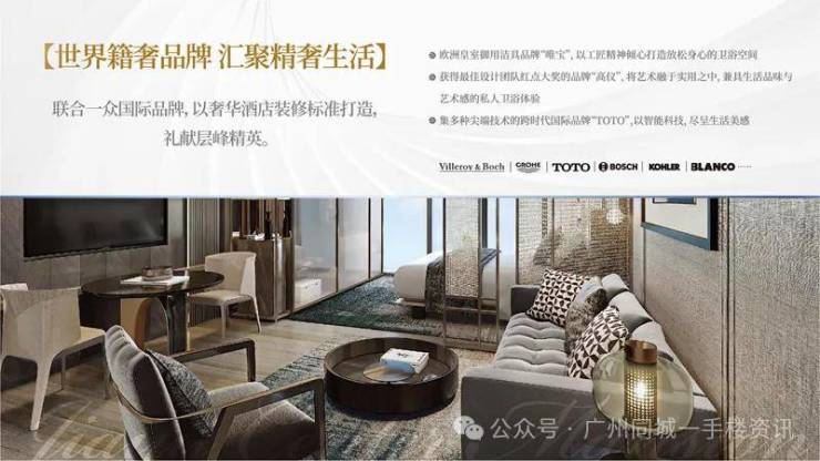 联合美诺、铂浪高、高仪、唯宝、TOTO等国际品牌,以奢华酒店装修标准献给顶级高净值层峰人士。