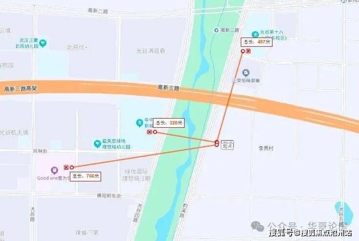 项目所处的区域也可以称得上是光谷中心城南区最精华的部分,除了前面提到的“天空之城”各项配套之外,项目距离光谷十八小东校区约500米,华师新城实验初中约300米,约800米可以到达即将开业的壹为邻邻里中心。