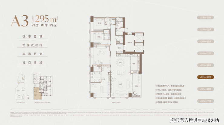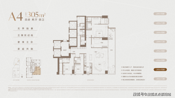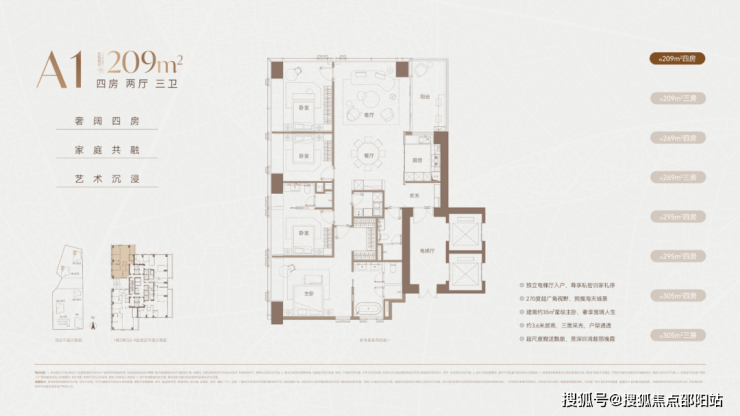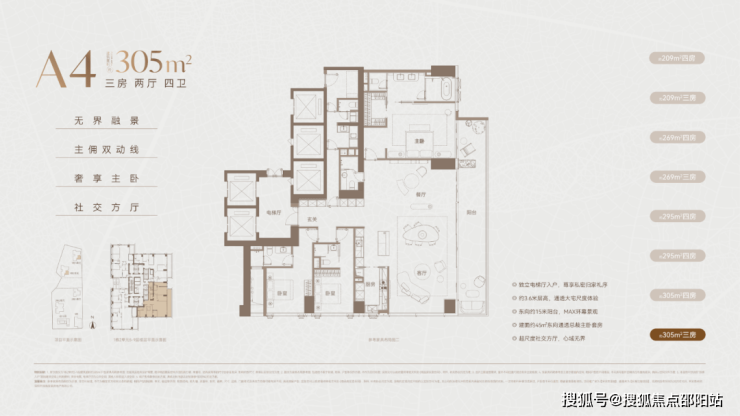 以下是官方公布的209-305㎡的两种方案户型设计图。