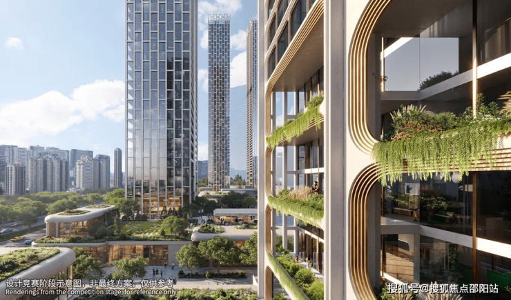 从效果图来看,外立面非常之有个性彰显。这是深圳从铝板玻璃幕的风格后又脱颖出来的一个新方向,也是进一步凸显出与过去老房子区别的鸿沟。