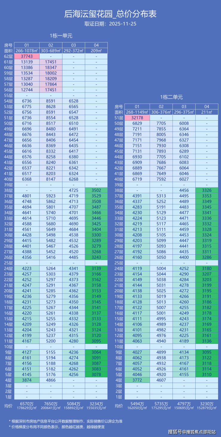 中低区:269㎡东北向,4—37层,共32套