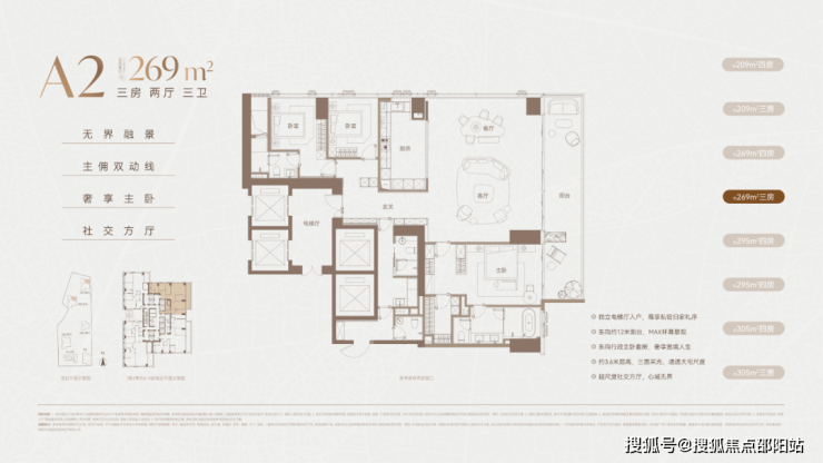 中低区:209㎡~269㎡~295㎡~305㎡