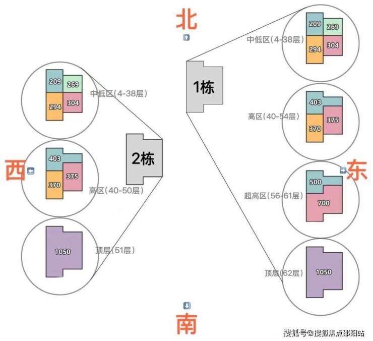 中低区:294㎡西南向,5—38层,共32套
