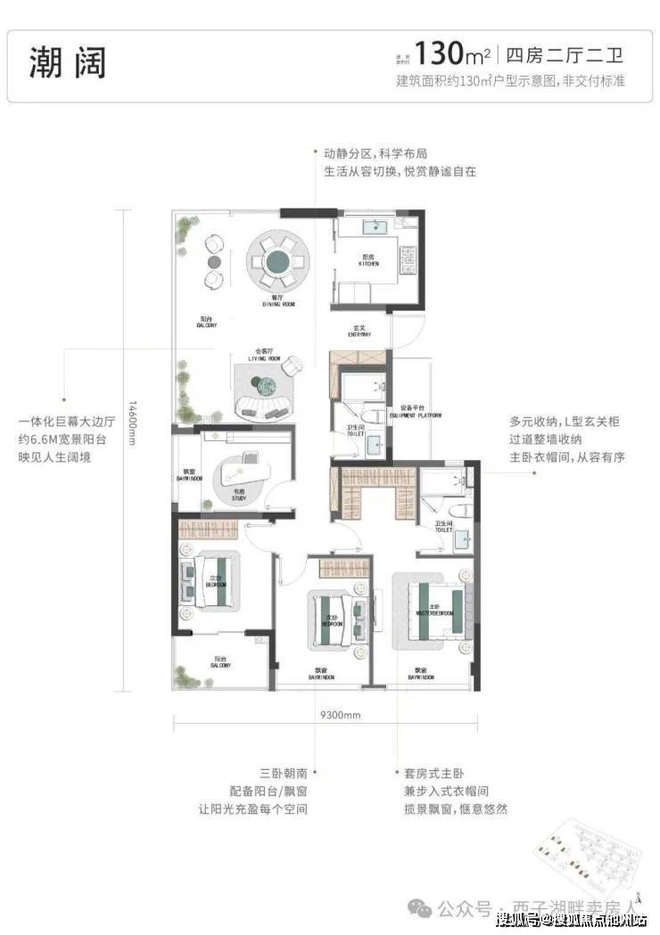 项目首批将推出定位300万级的墅区小高层。其中,建面约105平方米产品实现了“四开间朝南”的赏景格局;约127平方米户型则打造了独特的L型阔景视野;约130平方米户型更实现了“环景全面屏”般的观感,力求让约2.1万平方米中央公园成为家中日常的风景。