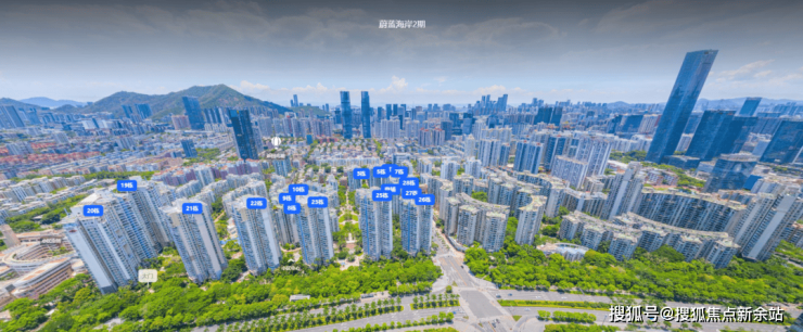 这个209户型,L形采光,主要是朝西和朝北,观海的面仅有一个阳台。能看到的城市景观,基本都是朝西的,画面如下图。