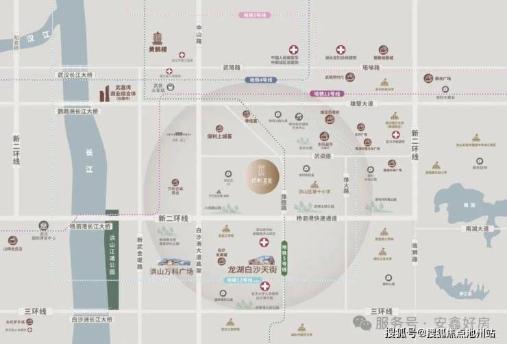 项目位于洪山区白沙洲板块,距离二环线直线距离约3.8公里,距离三环线直线距离约300多米,属于三环内。