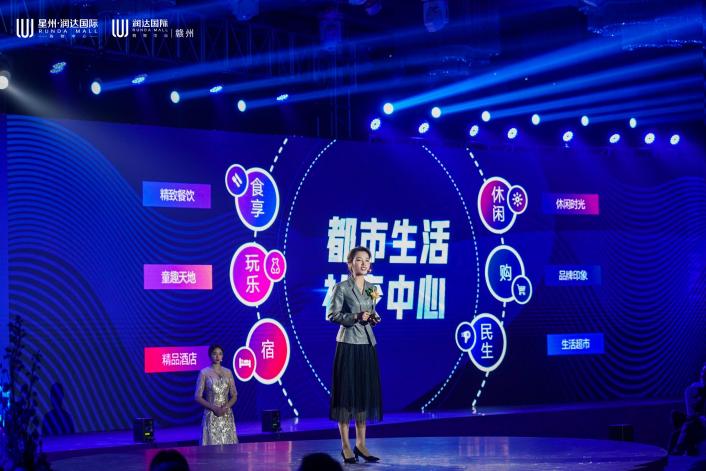 赣州润达商管公司总经理、星州润达集团商管公司总经理方慧婷女士上台对项目进行推介,向与会嘉宾介绍星州润达/赣州润达致敬赣州、致敬全民、致敬项目的三大使命,并对6座综合体详细规划做了深度解读,传达携手品牌伙伴与赣州共美好,让繁华更繁华的雄心愿景。