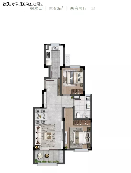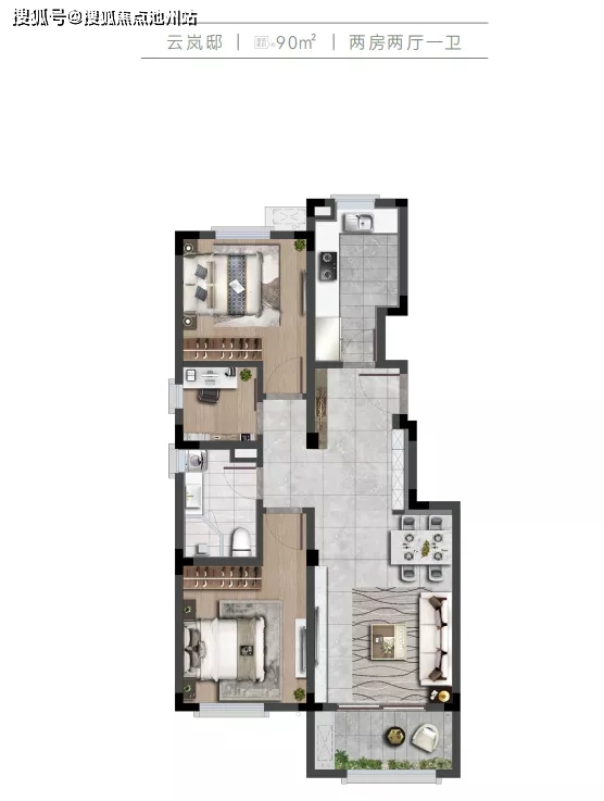除了合院,项目还有约80/90㎡2房2厅1卫户型。