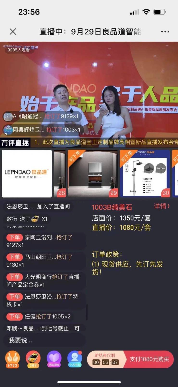 直播间内互动刷屏,连连爆单,因经销商观众们的热情踊跃,直播特别延长至凌晨12点,良品道线上直播销售再创优异成绩!