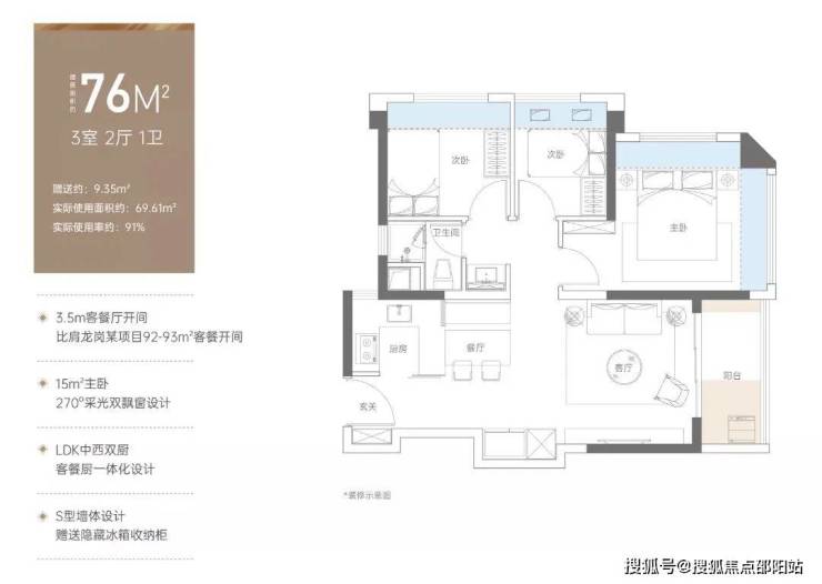 目前,市面上大部分户型的使用率都在70%-75%之间,片区也在80%左右,而美盛实际使用率却达到91-99%。