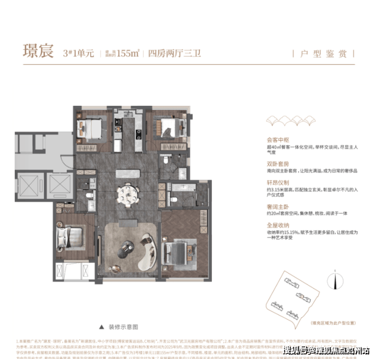 全户型电梯入户,3.15 米层高重新定义空间尺度;以约 100% 超高得房率,匹配国际高端精装标准,开创内环准四代豪宅新纪元,树立空间价值天花板。