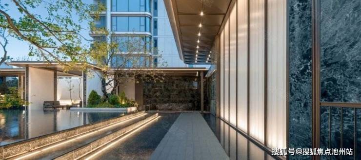 - 外拥进深70米北塘河一线滨水公园,内嵌近万方中央水景花园,形成“内外双园无界共生”的生态体系。