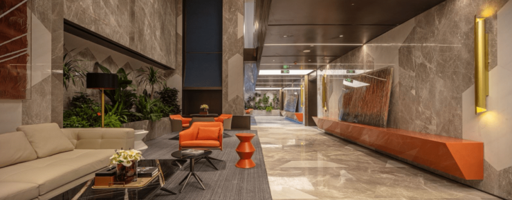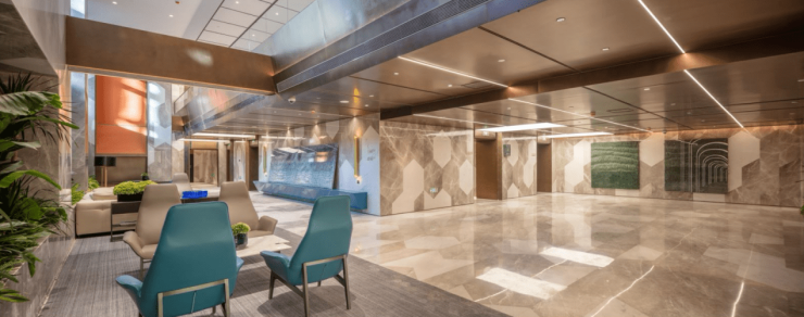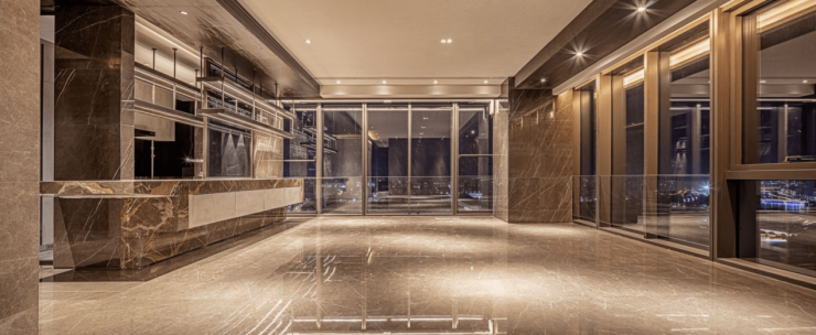 此外,自实景交付以来,大都会滨江在建筑观感、空间规格、精装品质、观景效果等方面均呈现出超乎想象的效果。超过150米的建筑高度,立面全部采用同款中国尊、银泰、上海大剧院的第三代玻璃幕墙,利用超白玻璃出色的透光性,搭配淡香槟色铝合金饰条装饰,营造出符合国际审美的现代简约建筑风格。