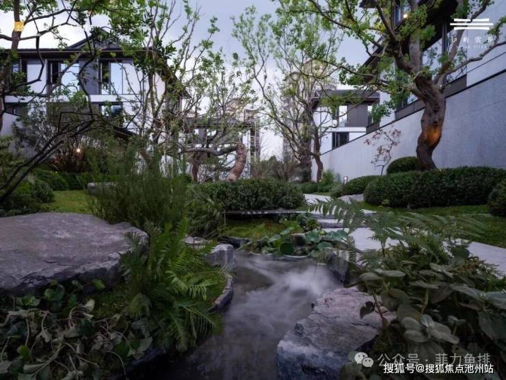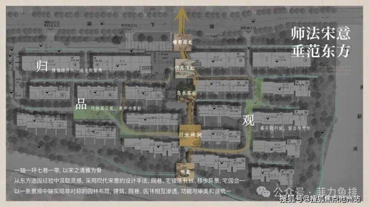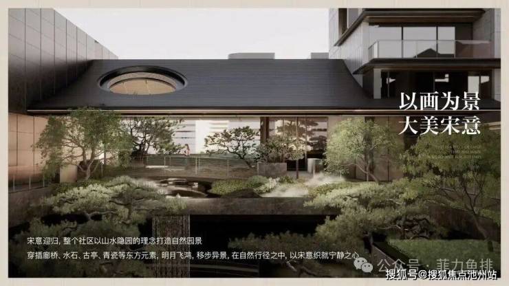 景观架构:独创“一带一轴一环九巷”立体园林——中轴以“壶中天地”造山水叠境,九巷植入四时主题再现宋画《四景山水图》移步异景,滨水带借双河岸打造私属公园;