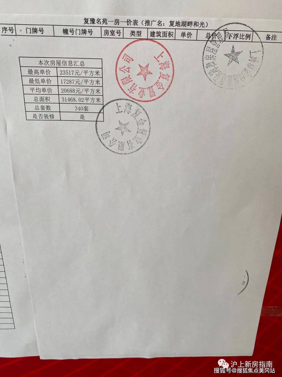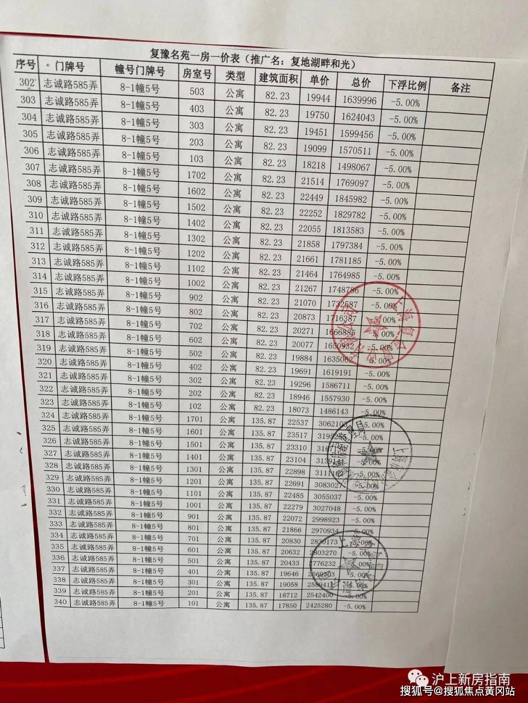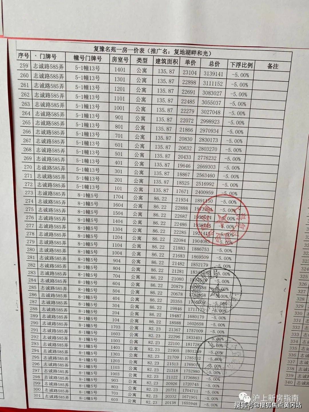 一房一价表