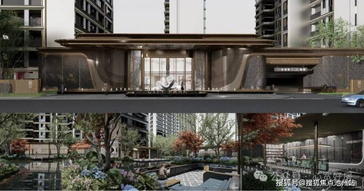 建筑采用现代简约风格,蓝灰玻璃与浅色系铝板交织,香槟色铝板点缀,搭配精致窗框比,与花榕共筑瓯江新封面